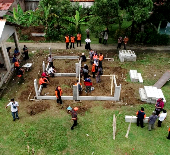 Teknologi Pembuatan Rumah Pengungsi (RUMPI) Cepat Bangun untuk Korban Bencana Alam ini sangat sederhana dan mudah didalam pembangunannya. Struktur bangunan RUMPI ini sangat kuat, nyaman dan aman untuk dihuni. Bahan baku untuk membuat stuktur rangka & dinding ini banyak tersedia di seluruh Indonesia, sehingga yang akan membangun RUMPI tidak akan kesulitan didalam pembangunannya. Proses Pembangunan Rumah Pengungsi (RUMPI) Cepat Bangun Untuk Korban Bencana Alam, ini dimulai dari Proses Pemasangan Pondasi Setempat dengan Sistem Pracetak; Pemasangan Struktur dan Dinding RUMPI dan Pemasangan Rangka Atap dan Penutup Atapnya dan terakhir pemasangan instalasi listrik dan instalasi air minum.